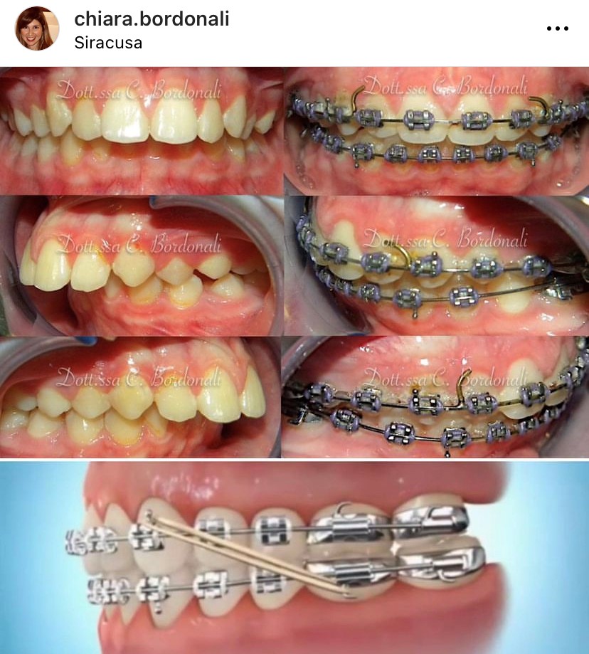 Esempo di uso di elastici intraorali di II Classe con apparecchio vestibolare: